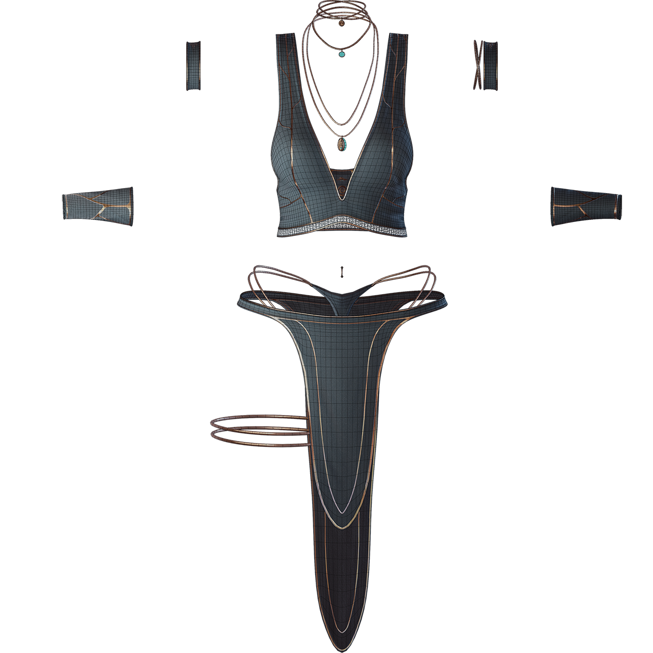 -Fbx including: Skirt, Panties, Skirt, Armbands, Footbands, Bellyputton Piercing, Garter Ring, Wristguards