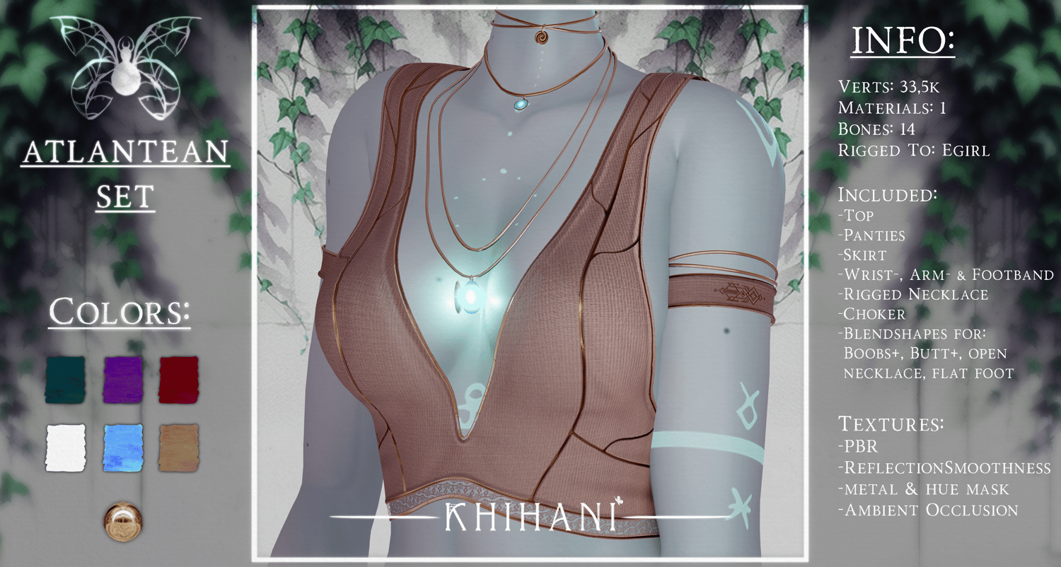 Made by me from scratch for my avatar Thalassa in Blender and Substance Painter.